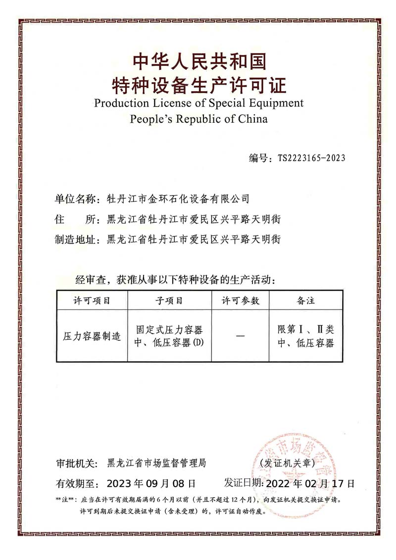 Mudanjiang Jinhuan Petrochemical Equipment CO.,LTD 牡丹江市金環(huán)石化設(shè)備有限公司 版權(quán)所有 www.wm024.com