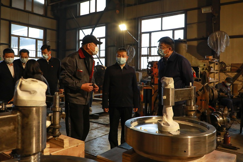 在牡丹江市金環(huán)石化設(shè)備有限公司,高忠遠同志深入生產(chǎn)車間檢查安全生產(chǎn)、隱患排查、疫情防控等措施落實情況,向企業(yè)員工宣講省十三次黨代會精神,并認真聽取企業(yè)歷史沿革、生產(chǎn)經(jīng)營、經(jīng)濟效益等情況介紹,了解企業(yè)發(fā)展面臨的問題和困難,對企業(yè)安置殘疾人就業(yè)給予充分肯定和高度贊譽。他指出,金環(huán)石化是由國有企業(yè)轉(zhuǎn)制而來的股份制民營企業(yè),是目前國內(nèi)唯一一家專門生產(chǎn)快開盲板的廠家,產(chǎn)品銷售全國各省、市、自治區(qū)以及各大油田,并遠銷東南亞、中東地區(qū),是我市優(yōu)秀民營企業(yè)的代表和典范。他強調(diào),推動牡丹江全面振興全方位振興,工業(yè)要率先振興。企業(yè)要在學(xué)習(xí)貫徹省十三次黨代會精神上下真功夫、實功夫,按照省黨代會關(guān)于“八個振興”,特別是產(chǎn)業(yè)振興和 “換道超車”部署要求,搶抓新一輪科技革命和產(chǎn)業(yè)變革機遇,勇于創(chuàng)新、敢于突破,切實把省黨代會精神轉(zhuǎn)化為指導(dǎo)生產(chǎn)、推動企業(yè)發(fā)展的強大動力。要全面落實安全生產(chǎn)主體責(zé)任,牢固樹立紅線意識、底線思維,建立健全全員安全生產(chǎn)責(zé)任制,進一步筑牢安全防線。他要求,轄區(qū)黨委政府特別是相關(guān)部門要以“能力作風(fēng)建設(shè)年”活動為契機,針對企業(yè)發(fā)展痛點難點,不斷深化紓困解難措施,用心用情用力當(dāng)好企業(yè)發(fā)展服務(wù)員。屬地公安機關(guān)要充分發(fā)揮職能作用,依法嚴(yán)厲打擊妨礙企業(yè)生產(chǎn)經(jīng)營違法犯罪活動,常態(tài)開展安全生產(chǎn)、疫情防控工作督導(dǎo)指導(dǎo),全力保障企業(yè)合法權(quán)益和安全生產(chǎn)。